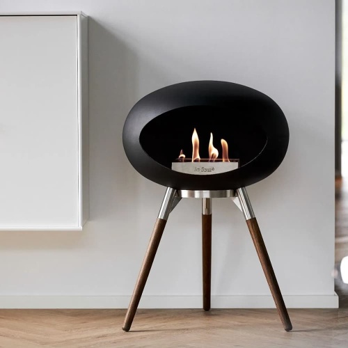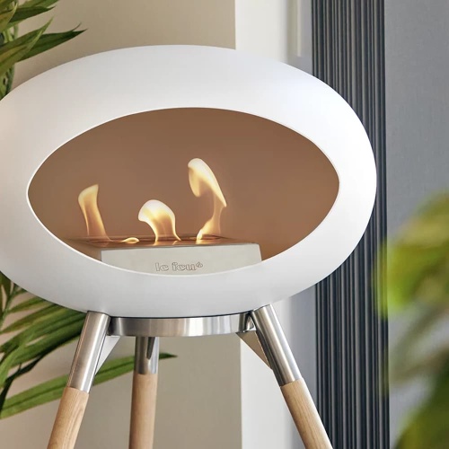 La marque Cocoon Fires propose également des cheminées sur pied remarquables comme le modèle Pedestal, dont la coquille en forme d'œuf crée un écrin parfait pour les flammes. Disponible en différentes combinaisons (coquille blanche/pied blanc, coquille noire/pied cuivre, etc.), ce modèle permet une personnalisation poussée qui s'adapte à tous les intérieurs.