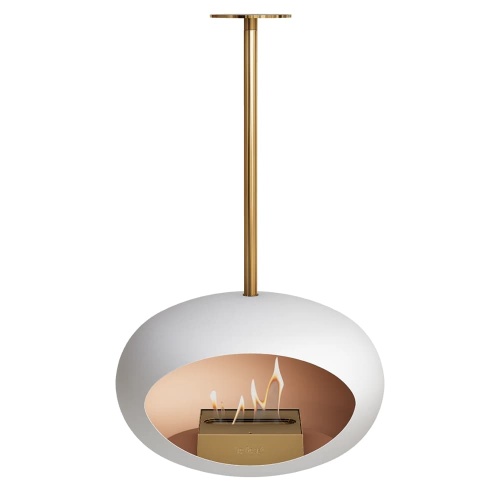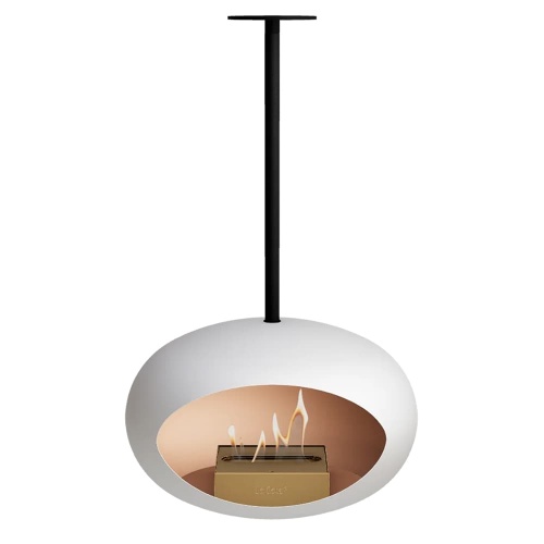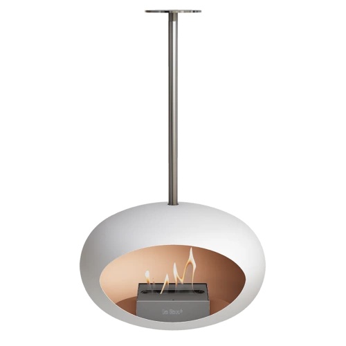 Sky se distingue par sa suspension unique au plafond, qui donne à la cheminée une apparence légère et élégante. Le dôme elliptique semble flotter dans les airs tout en diffusant une chaleur douce, créant ainsi une ambiance cosy et détendue. Si vous recherchez une pièce simple et accrocheuse qui n'encombre pas l'espace au sol, alors Sky est certainement la cheminée qu'il vous faut.
